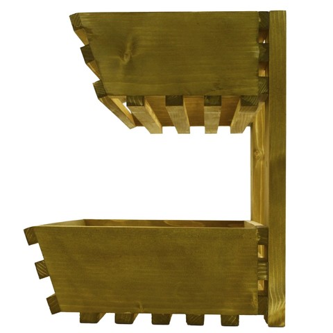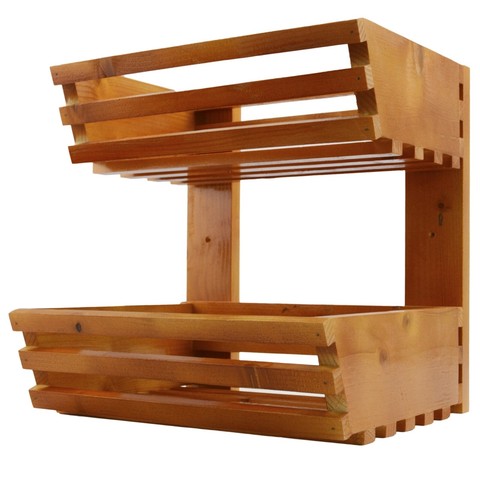2 Tier Fruit Basket Handmade Natural Wood Holder Rack Vegetable Storage Stand