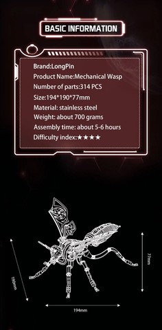 3D Metal Model Kits Wasp Moving Parts Adult Steampunk Mechanical Building Kit