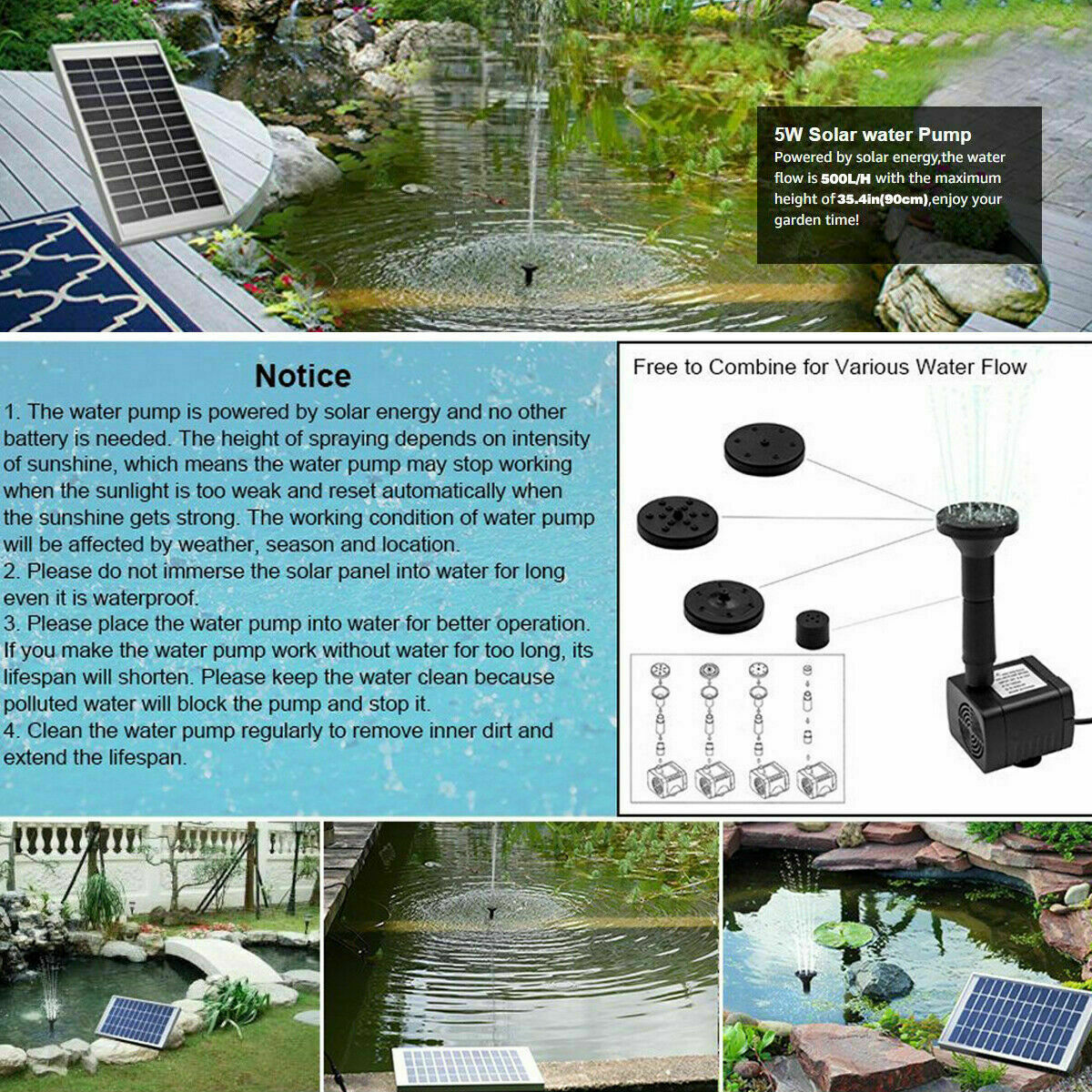 - Solar power submersible water pump kit, suitable for use in your aquarium, fountain pool, garden pond, etc.