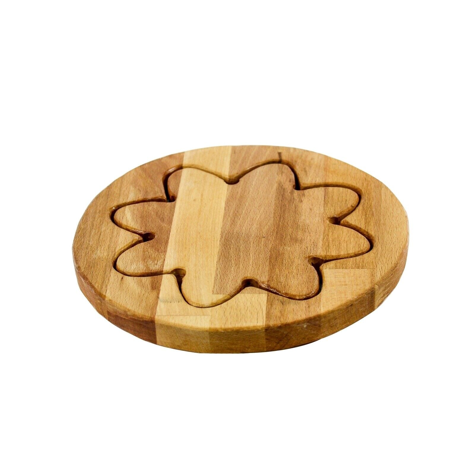 This modern wooden stand is perfect for placing hot dishes and pans, being a useful and elegant accessory in the kitchen and at the table. The stand consists of two pieces, one of which is in the shape of a flower, which can also be used as a decorative element. With this support, you will no longer have to worry when you place a hot pot on the table.