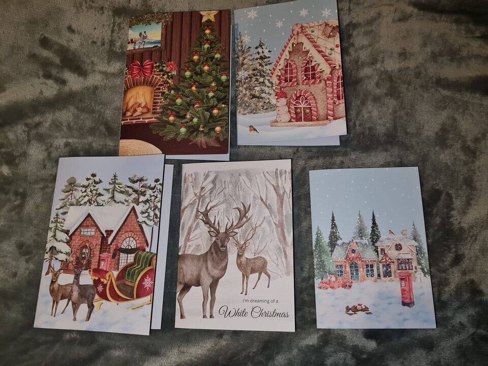 Pack of 10 2X of Each Design Christmas Cards Friends Relation Snow Scene Luxury