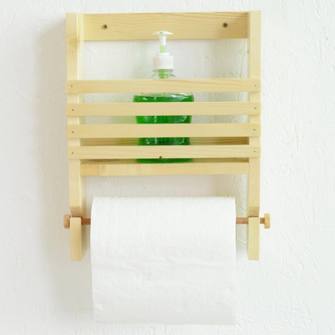 A kitchen is a place where we spend an important part of our time. To have everything at hand and save space, this shelf is the ideal solution. The shelf has a space for storing the paper towel, and another to place spices, soap, dishwashing detergent, or anything else you need. With a rustic style and simple lines, it fits easily in any kitchen.